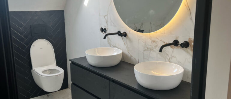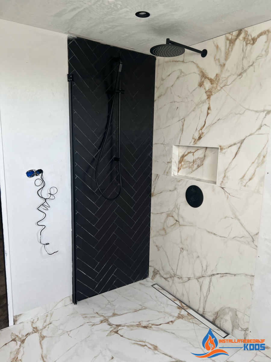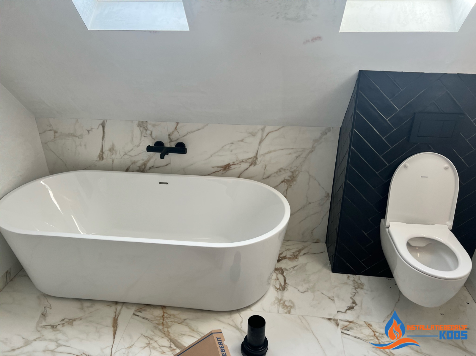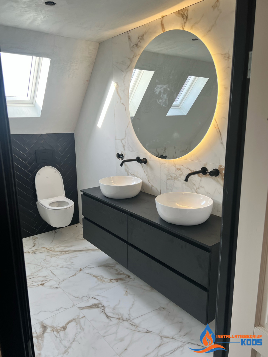 Bij deze badkamer in een woonhuis in Aalsmeer heb ik de installatie van de gehele badkamer sanitair en meubels gedaan. Het tegelwerk hier is door een extern bedrijf gedaan.